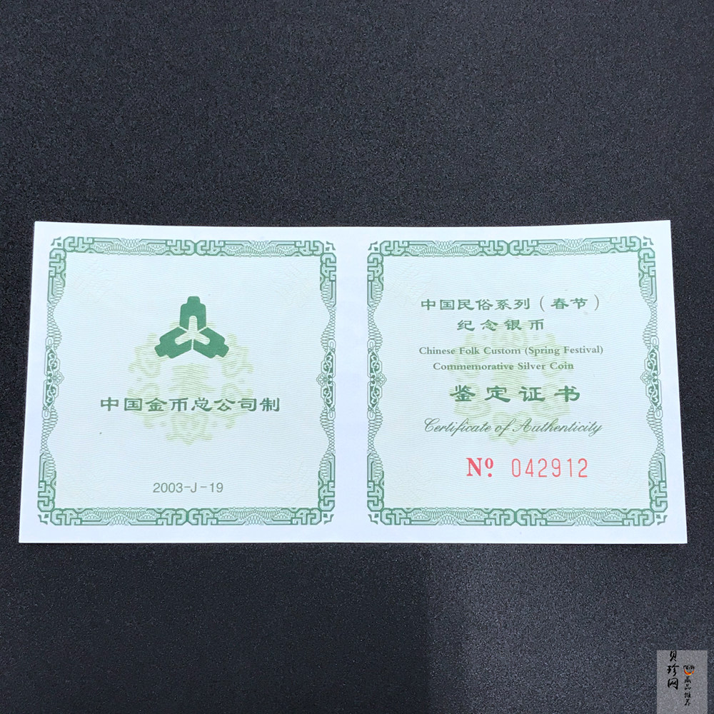 【030302】2003年中国民俗——春节银纪念币-春节吉祥装饰图1盎司精制银币