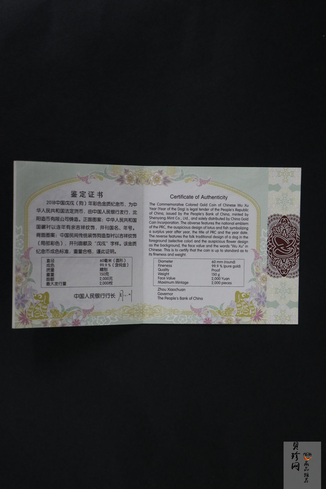 单币:2018年戊戌狗年生肖150克精制彩金币