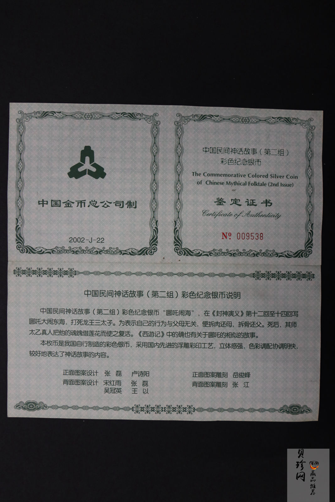 【020402】2002年中国民间神话故事彩色金银纪念币(第2组)5盎司-哪吒闹海长方形彩色精制银币