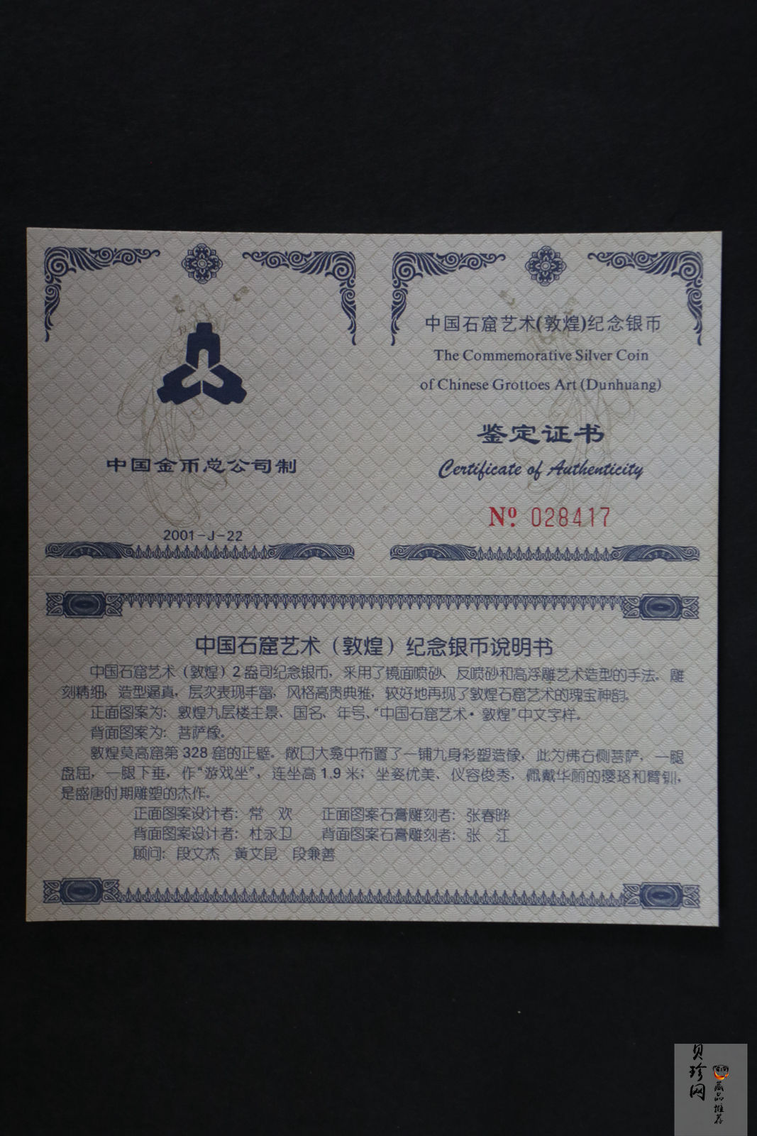 “中国石窟艺术”贵金属纪念币中,有一枚曾得到过世界钱币领域至高无上的褒奖,就是这枚2盎司银币,它曾荣获2003“世界硬币大奖”最佳银币奖。“看莫高窟,不是看死了一千年的标本,而是看活了一千年的生命”,这句话被无形有神地镌刻在这枚名声在外的精制纪念银币上,俗世的繁华不过是转瞬即逝,永恒的信仰留于方寸存于吾心。
