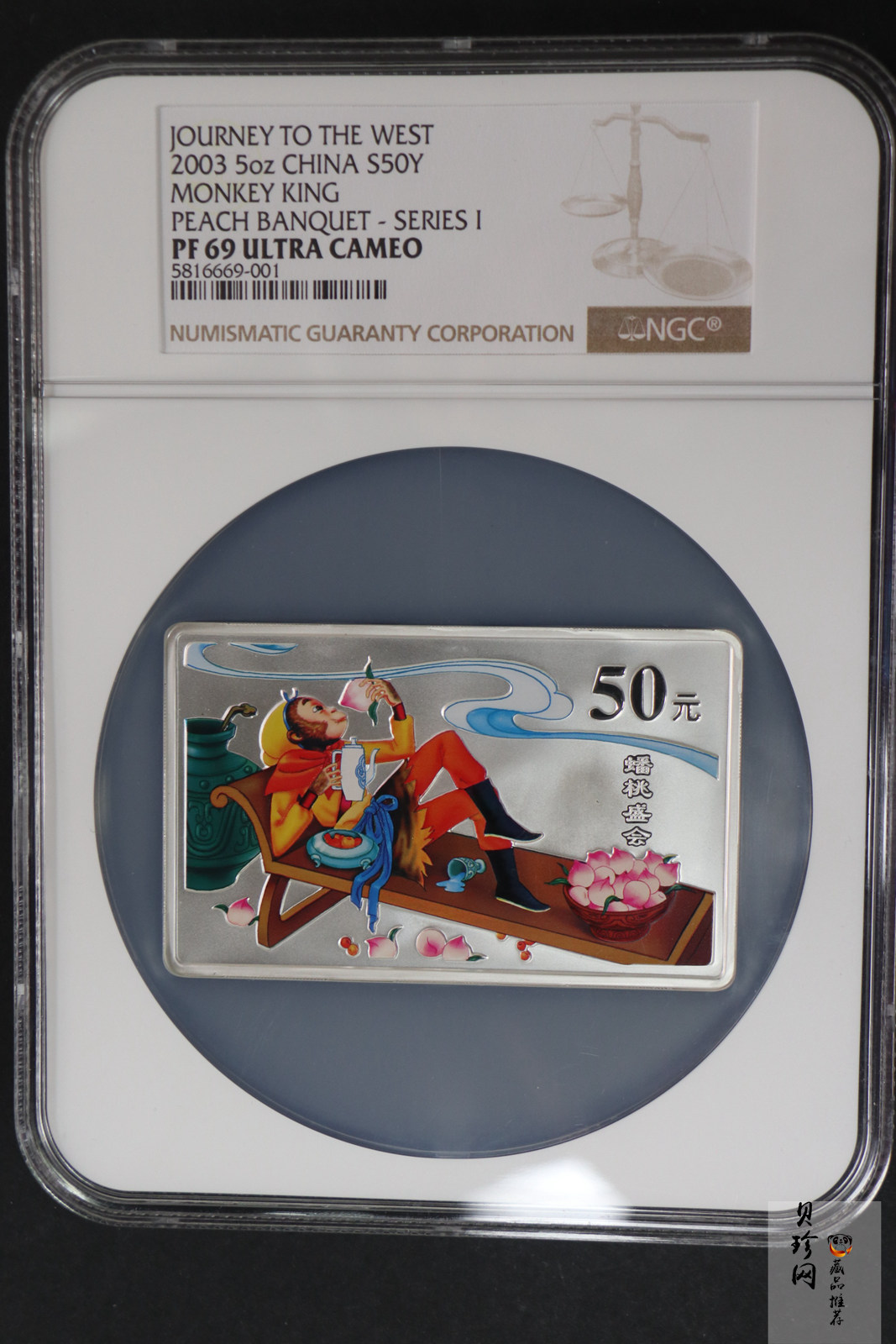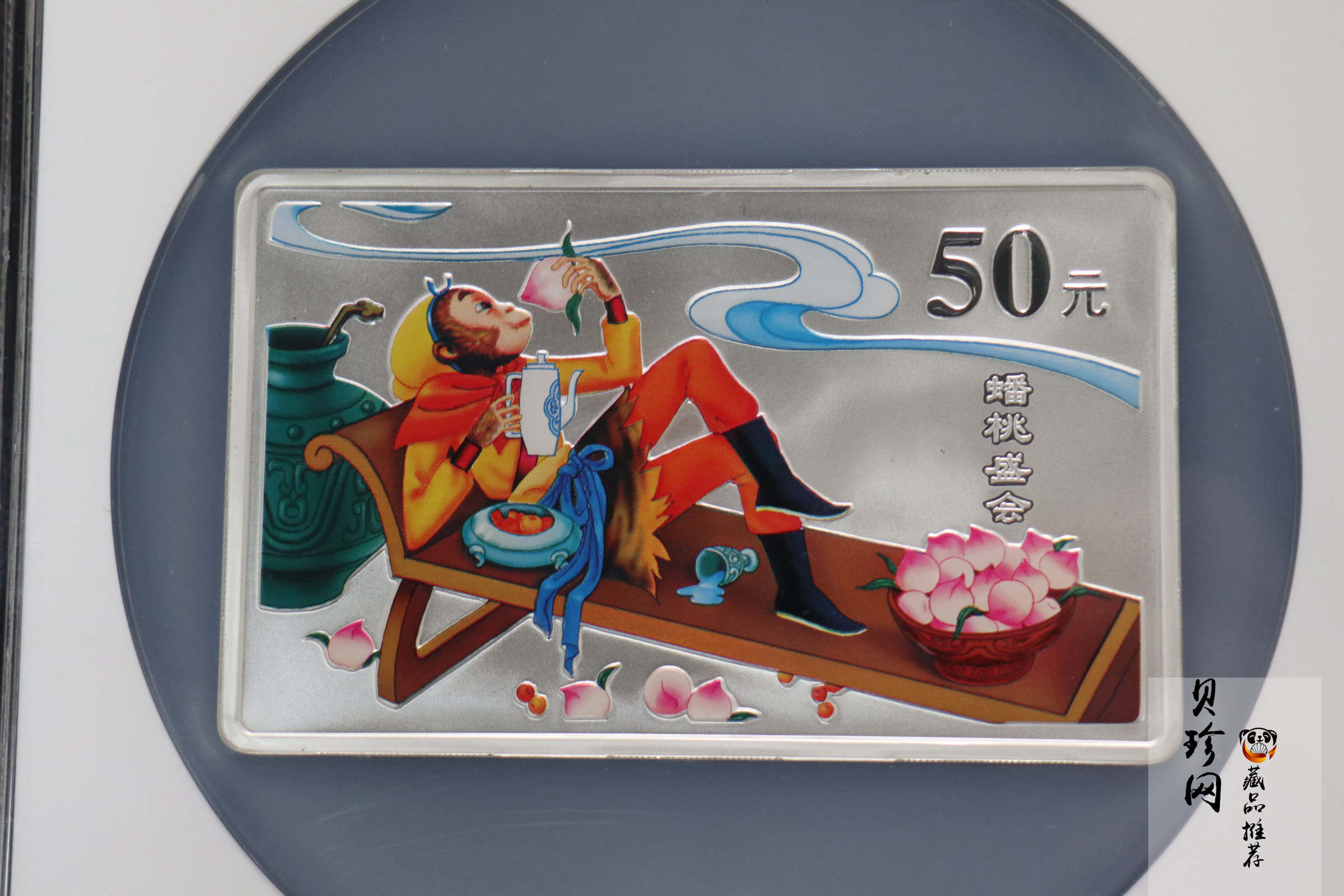 单币:2003年中国古典文学名著——《西游记》彩色银纪念币(第1组)-蟠桃盛会5盎司长方形彩色精制银币