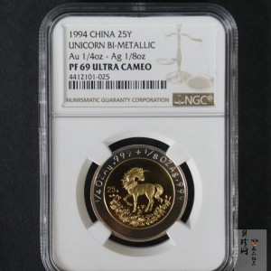 • 【940999】1994版麒麟1/4+1/8盎司精制双金属币