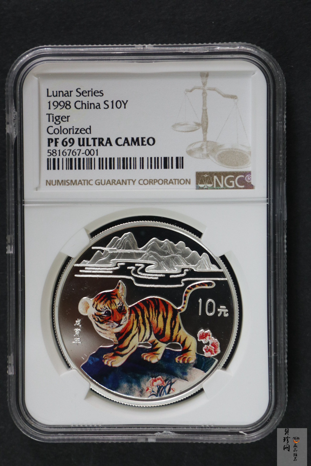 【980210】1998中国戊寅(虎)年银纪念币-小老虎1盎司圆形彩色精制银币