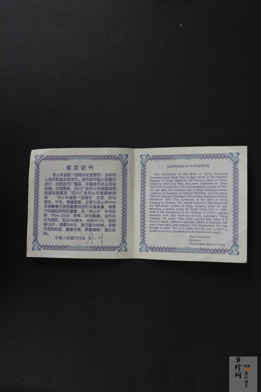 【040703】2004年邓小平诞辰100周年银纪念币1公斤精制银币