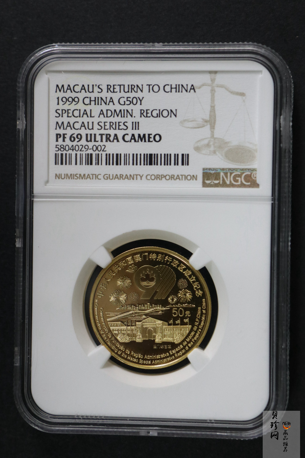 • 【991702】1999年澳门回归祖国金银纪念币(第3组)-澳门综艺馆1/2盎司精制金币