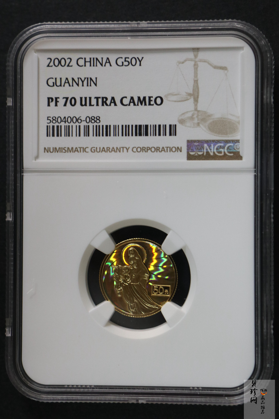 单币:2002年观音幻彩纪念金币-送子观音1/10盎司幻彩精制金币