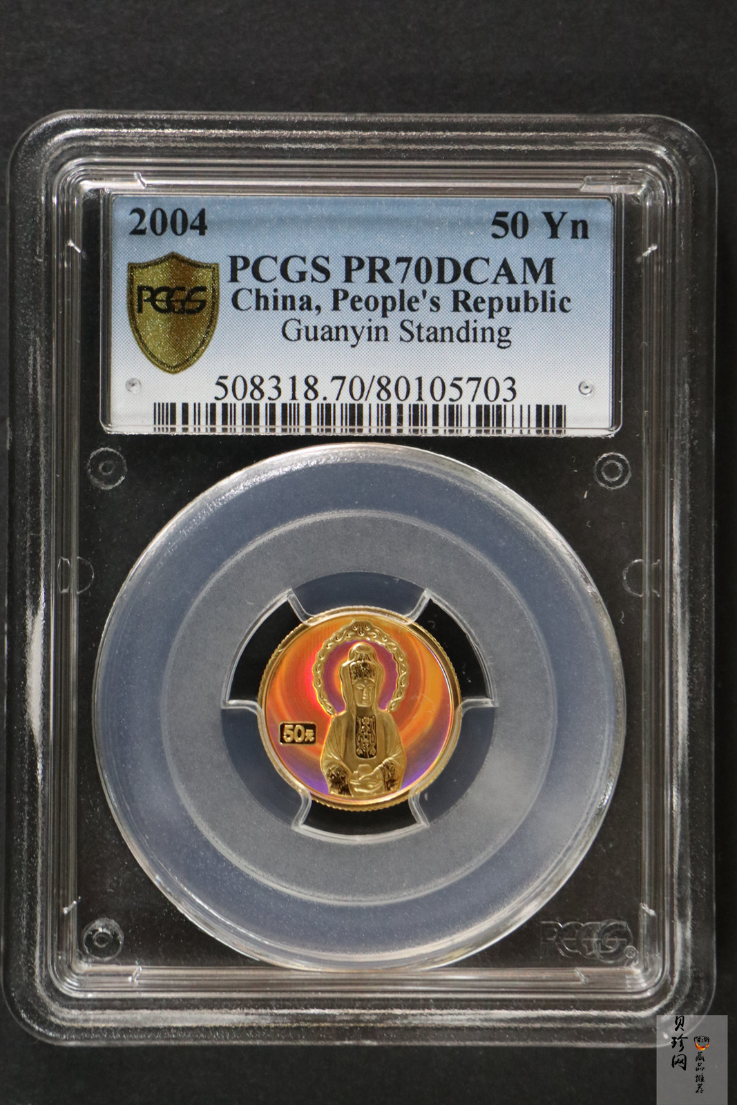 单币:2004年观音金纪念币-白衣观音像1/10盎司幻彩精制金币