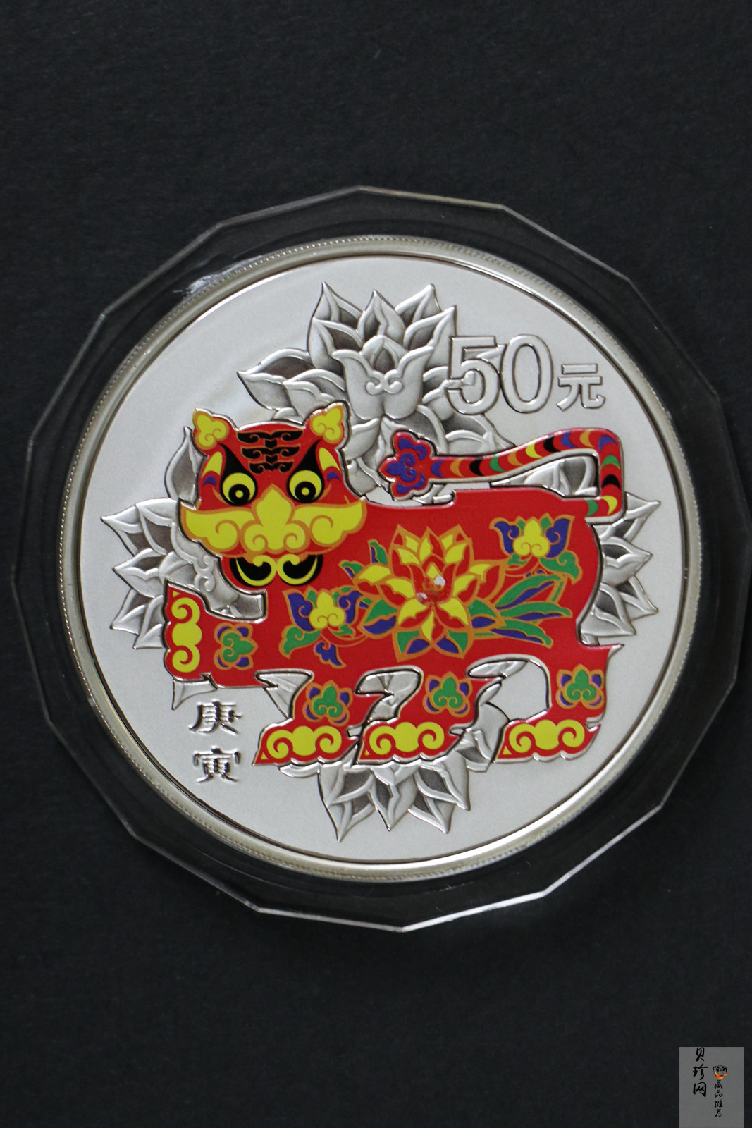 单币:2010年庚寅虎年生肖5盎司精制彩银币