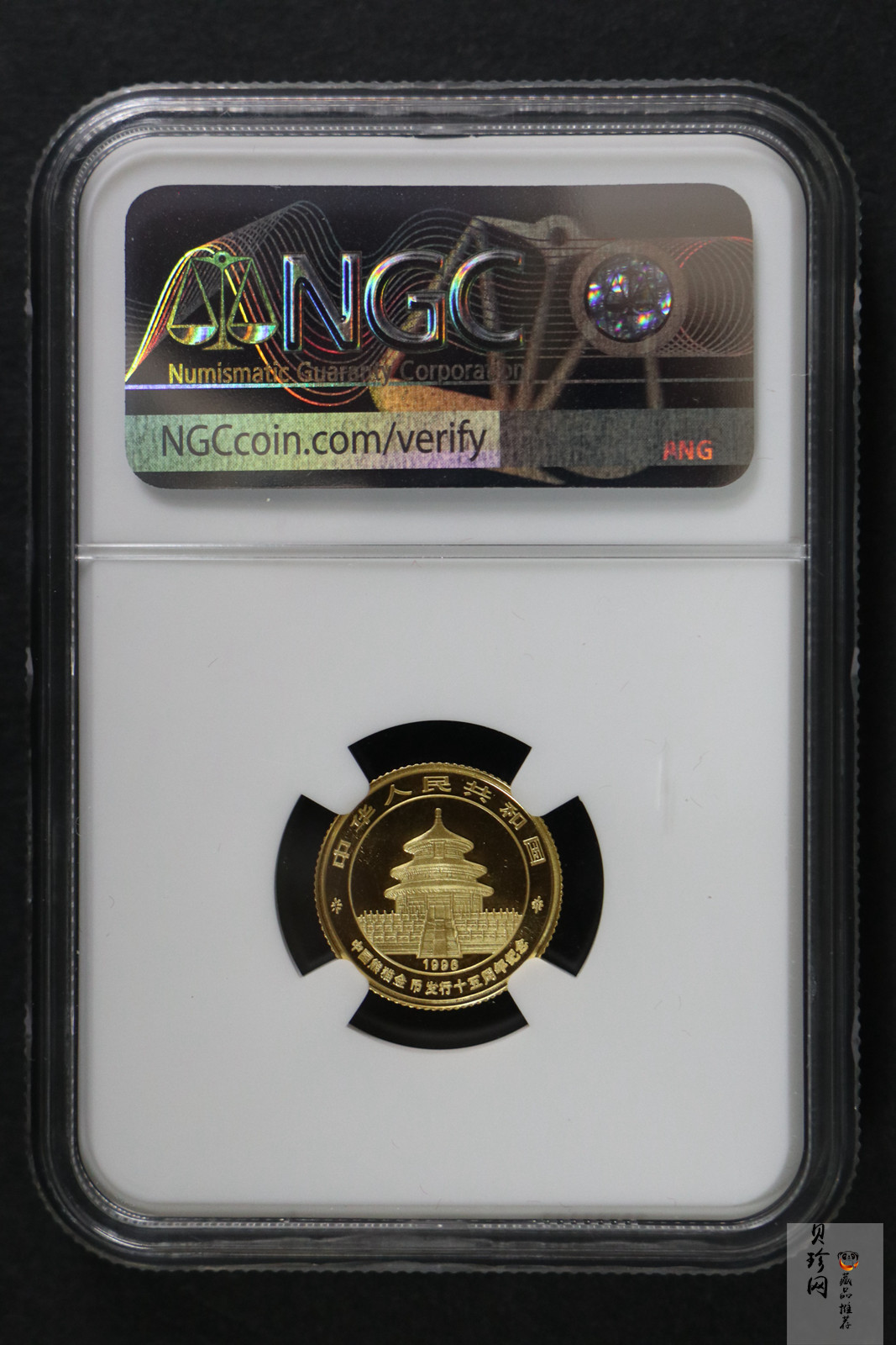 单币:1996年中国熊猫金币发行15周年纪念金币1/10盎司普制金币