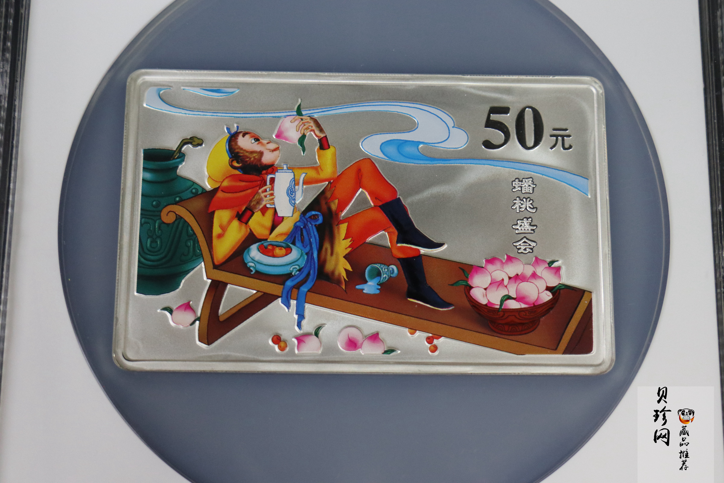 单币:2003年中国古典文学名著——《西游记》彩色银纪念币(第1组)-蟠桃盛会5盎司长方形彩色精制银币