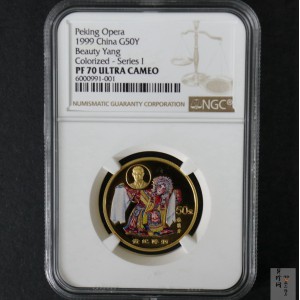 【991801】1999年中国京剧艺术彩色金银纪念币(第1组)-《贵妃醉酒》1/2盎司彩色精制金币