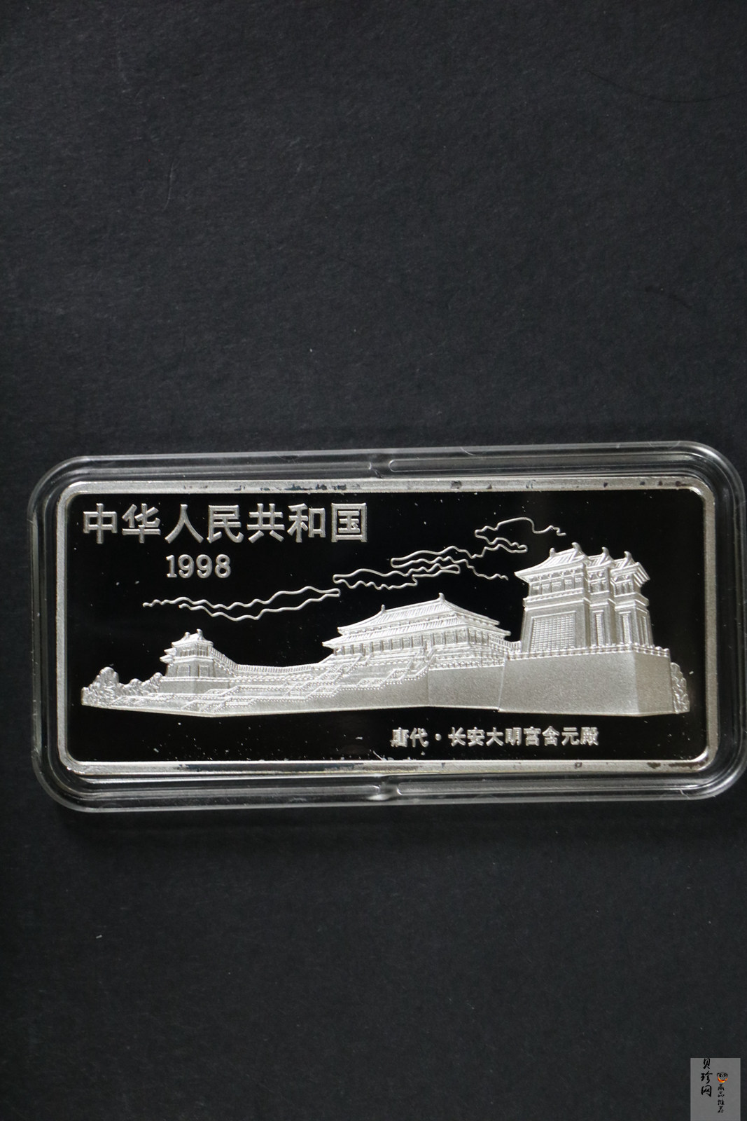 单币:1998年中国古代名画系列(簪花仕女图)彩色纪念银币5盎司长方形精制银币