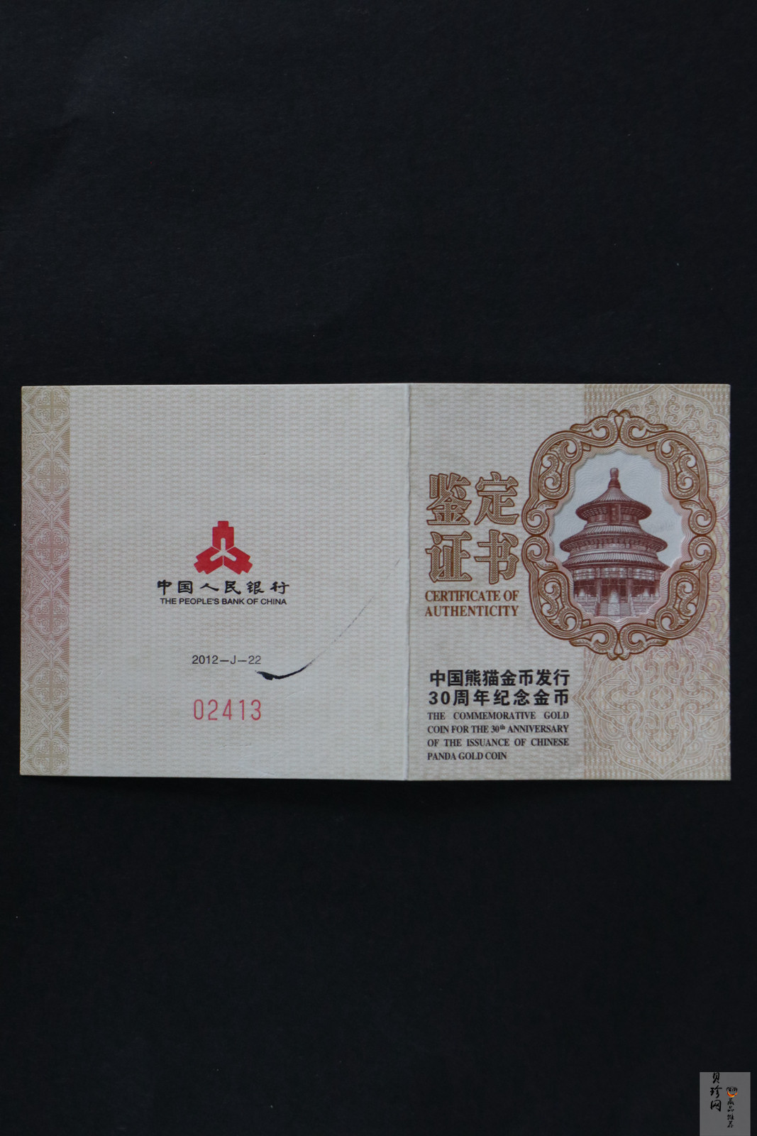 • 【120202】2012年熊猫金币发行30周年1盎司精制金币