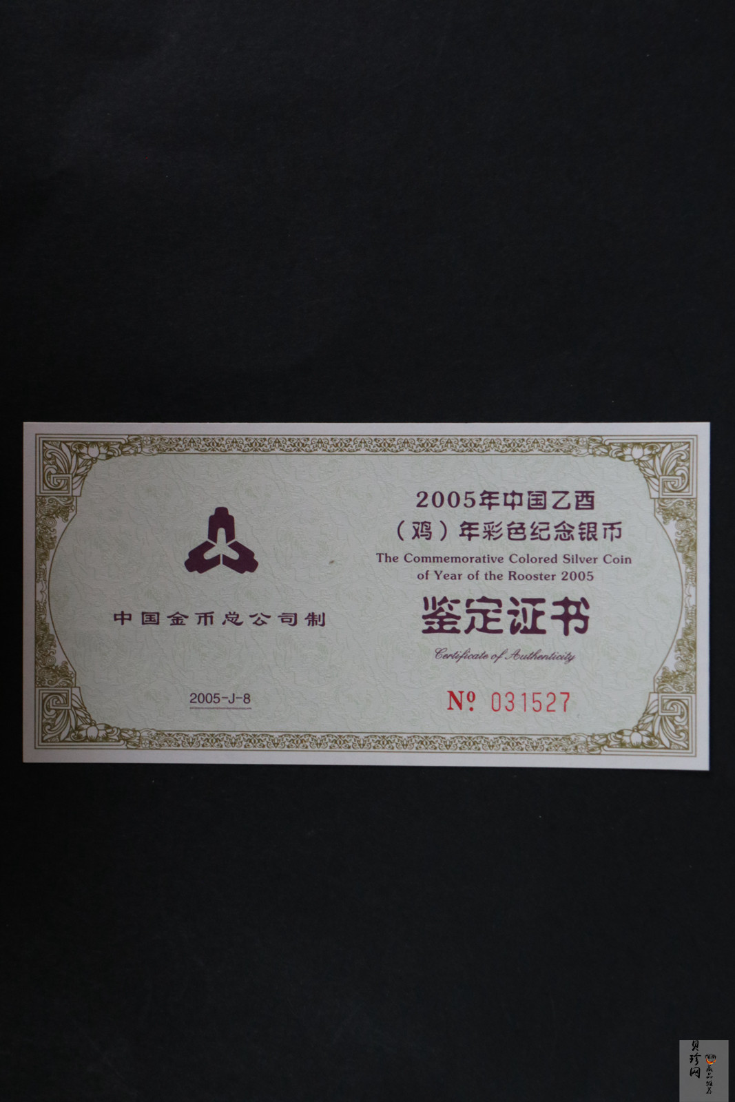 【050209】2005年乙酉鸡年生肖1盎司精制彩银币
