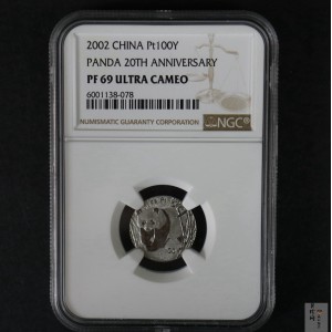 • 【020202】2002年中国熊猫金币发行20周年银铂纪念币1/10盎司精制铂币