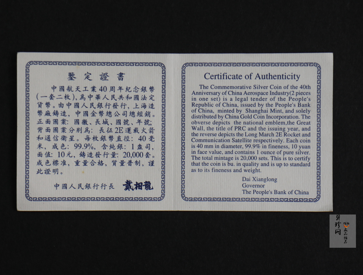 套币:1996年中国航空工业创建45周年纪念银币1盎司精制银币两枚一套