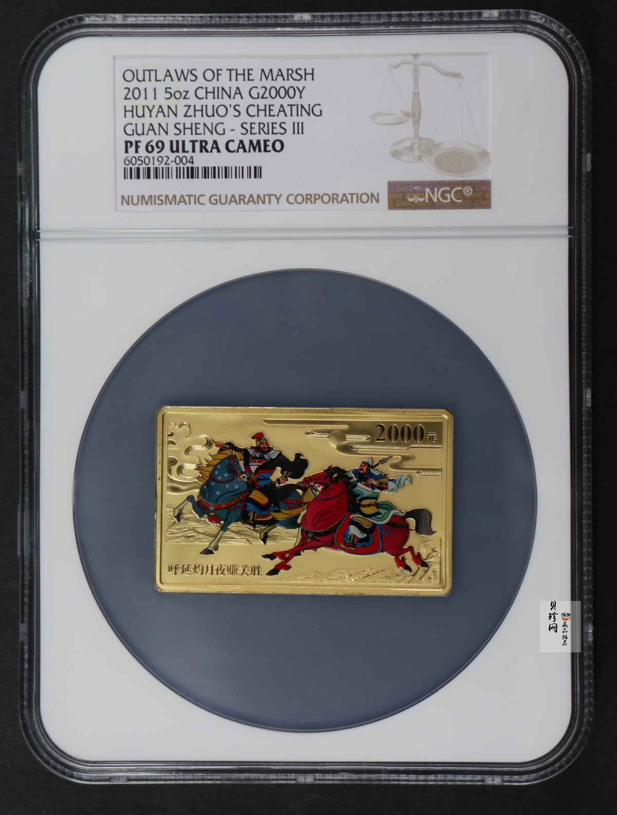 单币:2011年中国古典文学名著《水浒传》第(3)组-呼延灼月夜赚关胜5盎司长方形精制彩金币