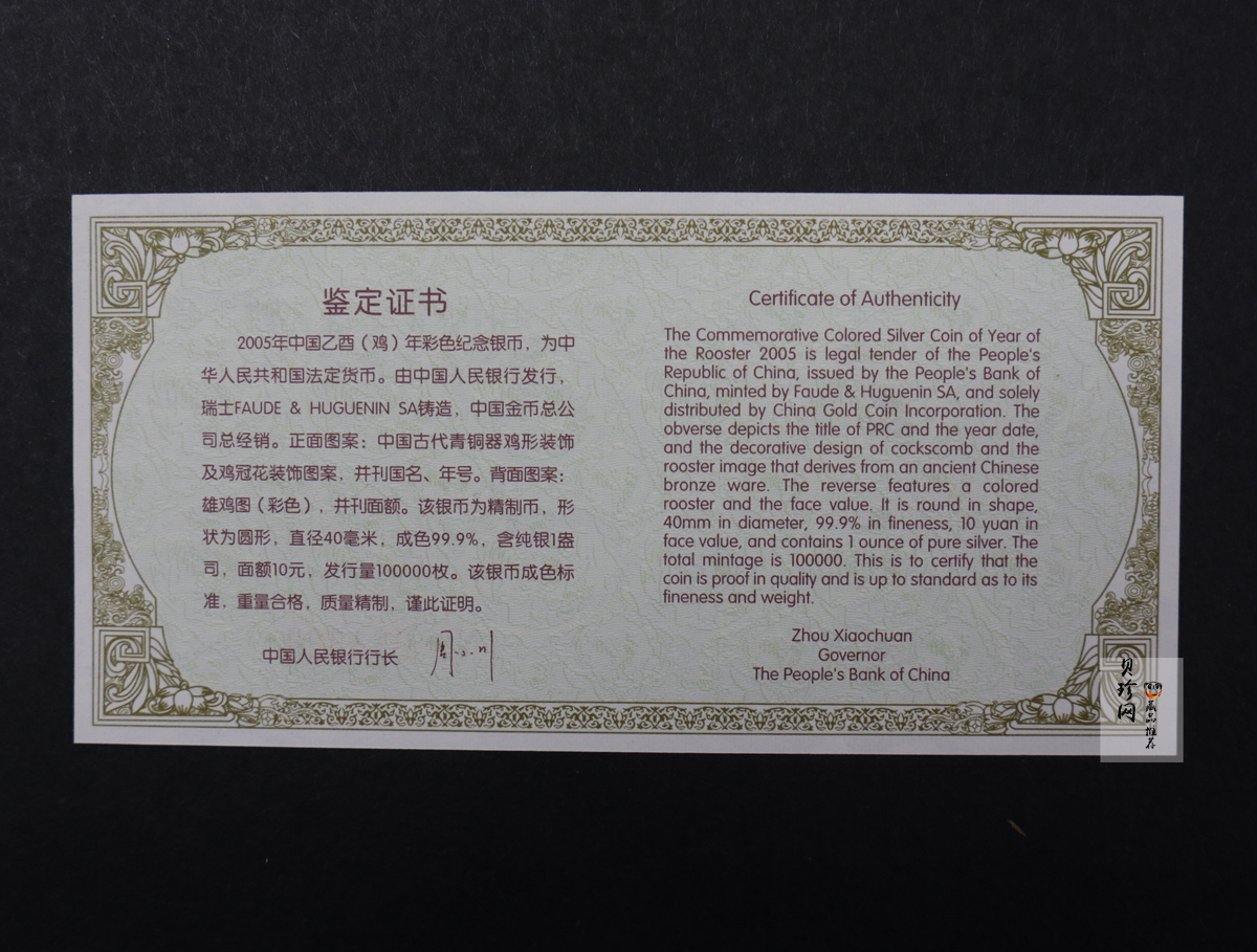 以上不难看出,作为2005鸡年发行的1盎司圆形银币其收藏价值是显而易见的。