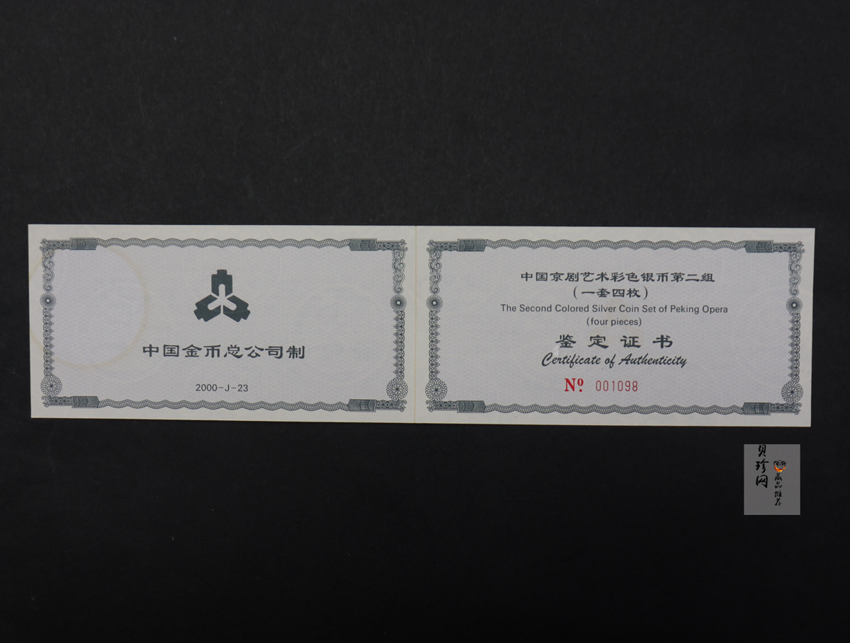 套币:2000年中国京剧艺术第二组彩色银币四枚一套