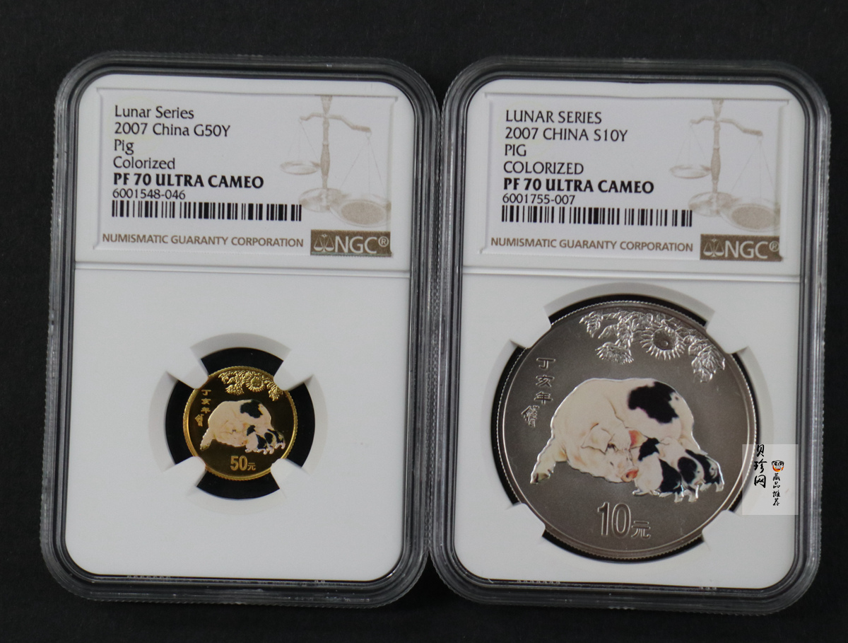 套币:2007猪年彩色生肖金银币2枚一套