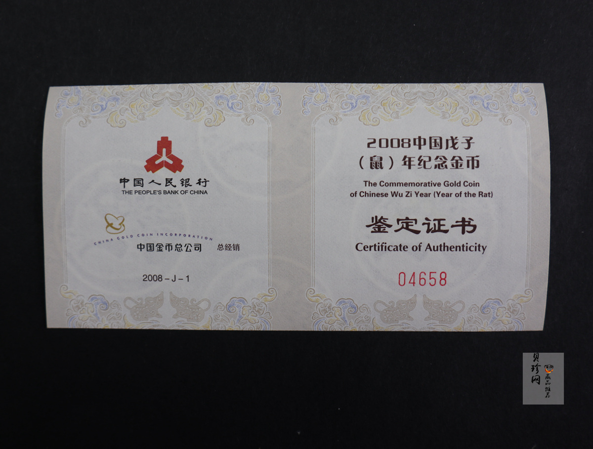 • 【081212】2008年戊子鼠年生肖1/10盎司普制金币