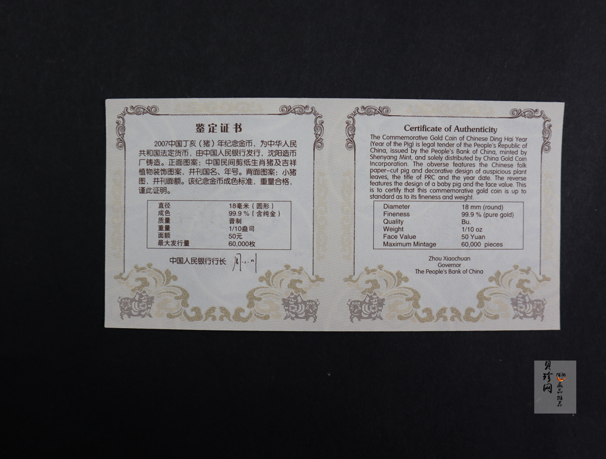 • 【061201】2007年丁亥猪年生肖1/10盎司普制金币