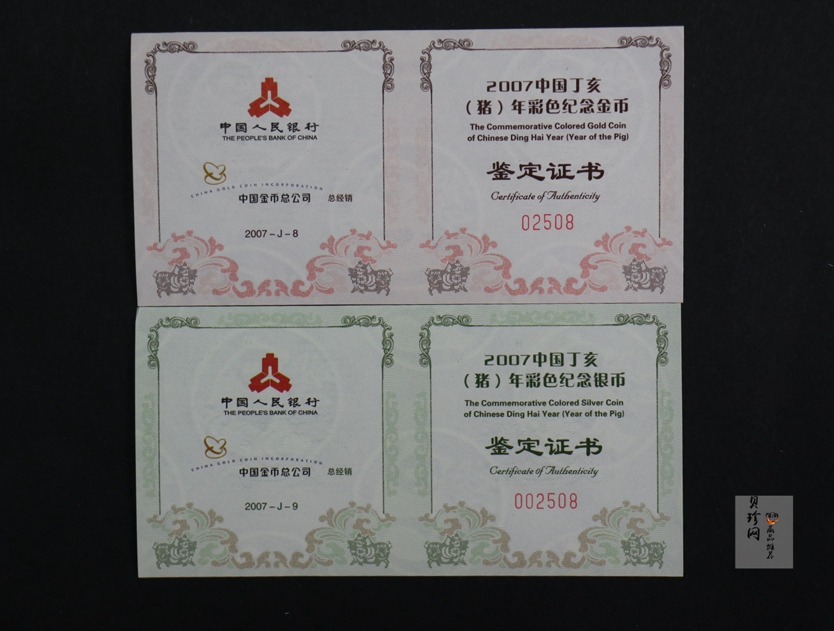 套币:2007猪年彩色生肖金银币2枚一套