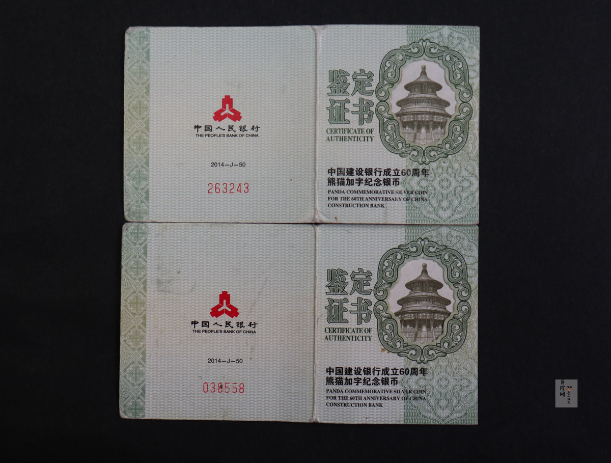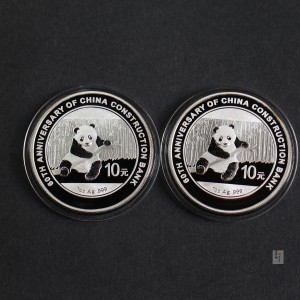 套币:2014年中国建设银行成立60周年熊猫加字1盎司银币2枚一套