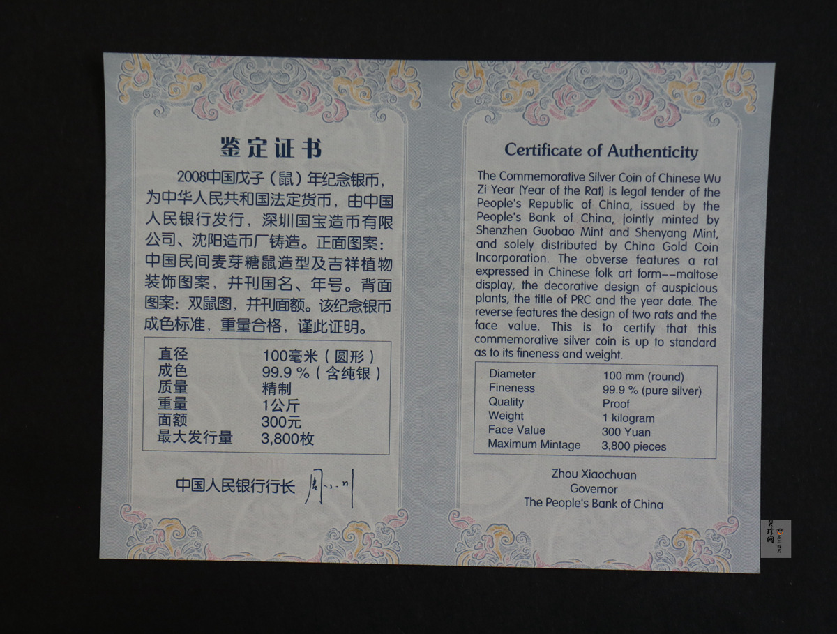【070807】2008年戊子鼠年生肖1公斤精制银币