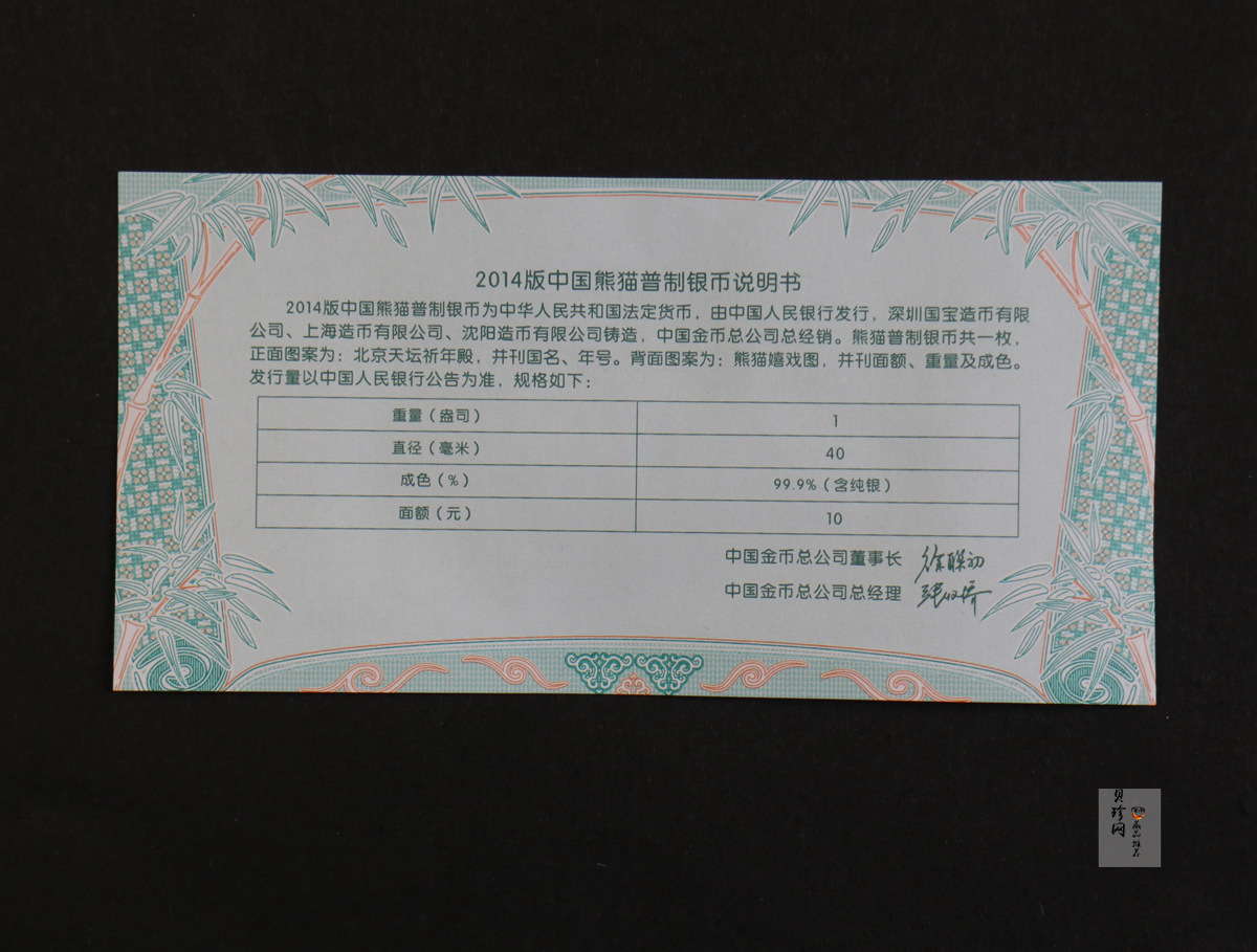 套币:2014年宝泉钱币国宝熊猫1000克银条