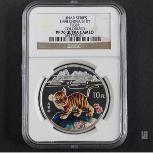 【980210】1998中国戊寅(虎)年银纪念币-小老虎1盎司圆形彩色精制银币