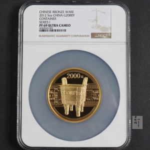 单币:2012年青铜器第(1)组-商·兽面纹方鼎5盎司精制金币