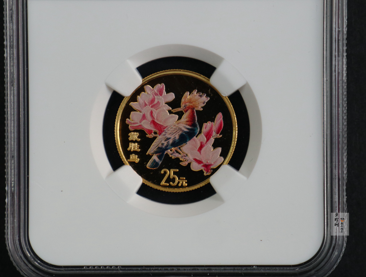 单币:2000年中国珍禽系列(戴胜鸟)彩色金银纪念币1/4盎司彩色精制金币