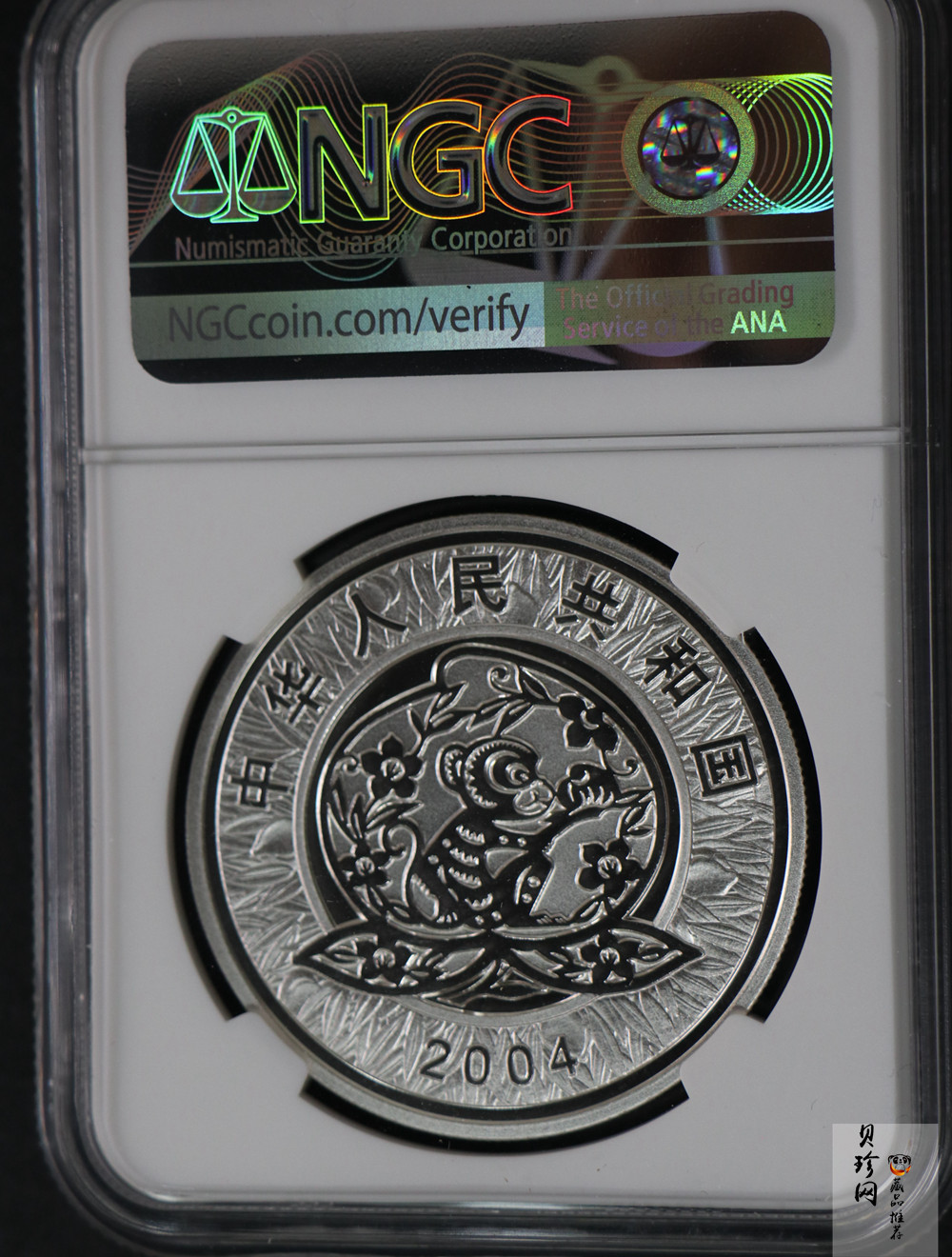 【040209】2004中国甲申(猴)年银纪念币-子母猴图1盎司彩色精制银币