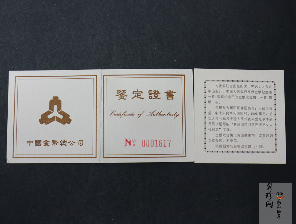 • 【951302】1995年联合国第4次世界妇女大会精制1/3+1/6盎司双金属币