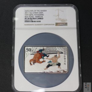 • 【111606】2011年中国古典文学名著《水浒传》第(3)组-燕青智扑擎天柱5盎司长方形精制彩银币