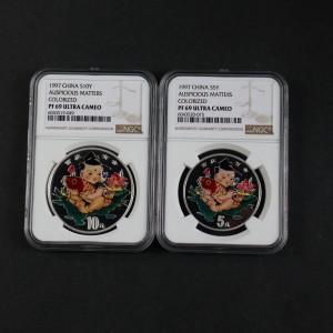 套币:1997年吉庆有余1盎司+1/2盎司彩银币两枚一套