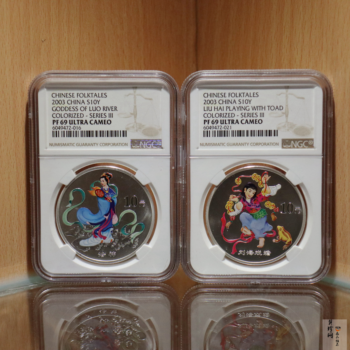 套币:2003年中国民间神话故事(第3组)1盎司彩色精制银币2枚一套