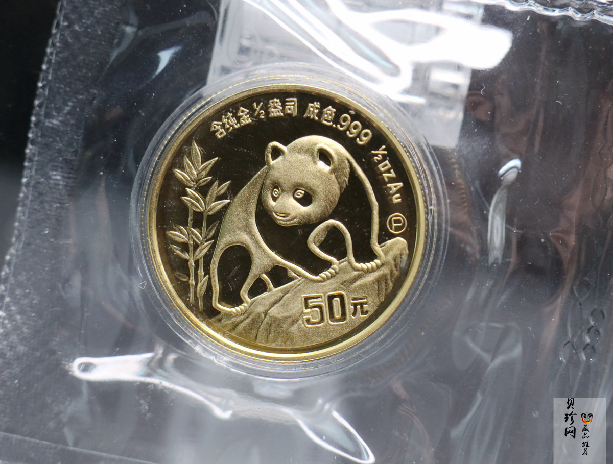 1990版的“熊猫”金银铂纪念币中小规格品种的背面图案,设计与雕刻者均为谢蕾美。这是谢蕾美第二次涉足“熊猫”图稿的创作。按理说,女性柔媚的视角、温婉的理解、细密的创作,最终表现出来的应该是充满浓浓的博爱色彩。但结果却恰恰相反,币面上流露出来的却是初生牛犊不怕虎的威猛与阳刚。