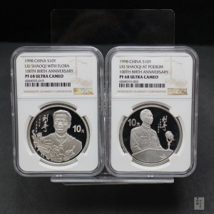 【989250】1998年刘少奇诞辰100周年1盎司精制银币两枚一套