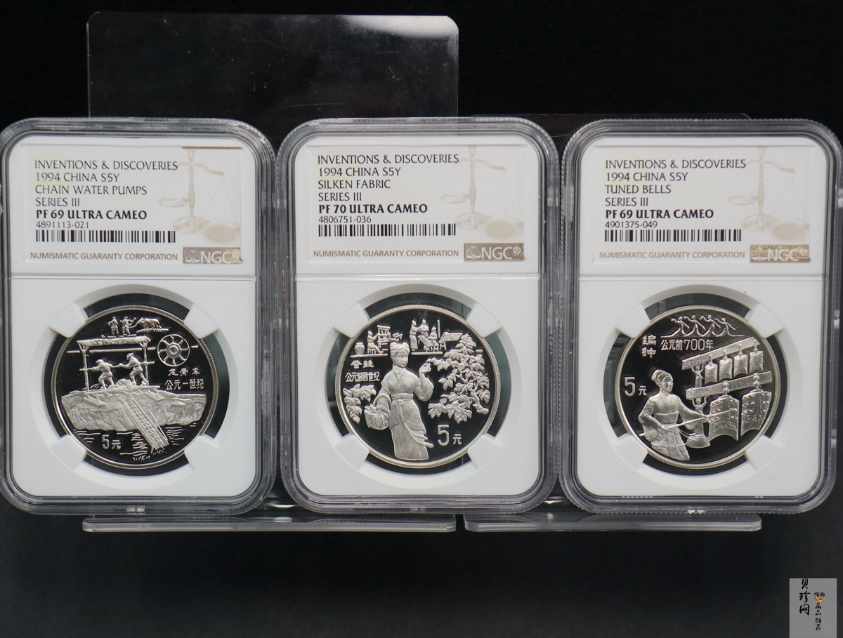 编钟:最终出现币面的“编钟”,是古代编钟演奏过程的一个局部大特写。之所以“大”,是因为出现于币面的编钟,上下两排,总共为6只。其中上排4只为小号,下排2只为大号。这是有意做出的安排,小,展现编钟磅礴气势;大,放大编钟精美工艺。尤其是后者,在雕刻过程中细密制作,花费了不少功夫。编钟主要为古代宫廷雅乐,逢征战,逢宴享,逢朝聘,以及祭祀等重大场合,都要演奏编钟。演奏分独奏、合奏等多种形式。编钟因此又被称为“钟鼓之乐”。
