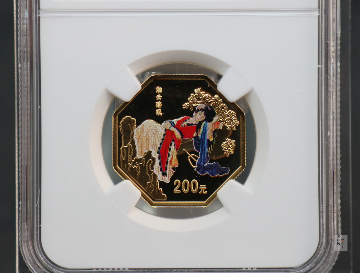 单币:2002年中国古典文学名著——《红楼梦》彩色金银纪念币(第2组)-湘云醉眠1/2盎司彩色精制金币