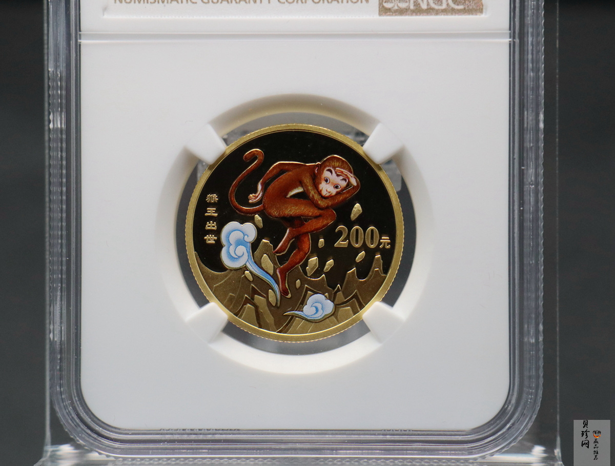 单币:2003年中国古典文学名著——《西游记》彩色金纪念币(第1组)-猴王出世1/2盎司彩色精制金币