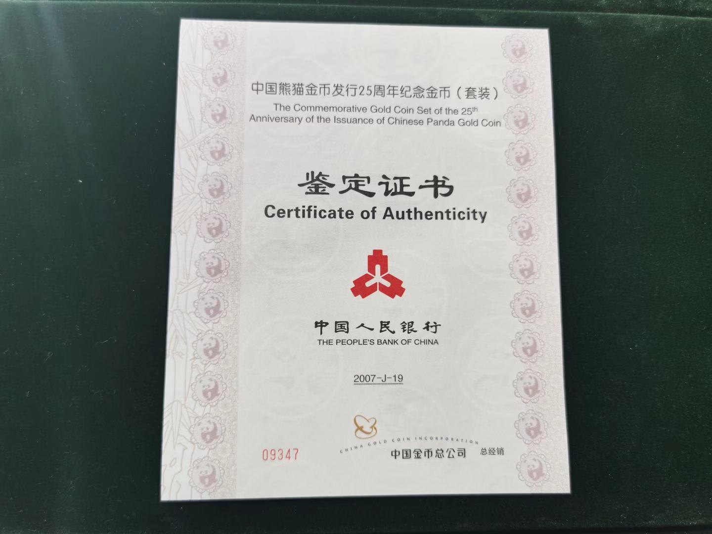 套币:2007年中国熊猫金币发行25周年1/25盎司精制金币25枚一套