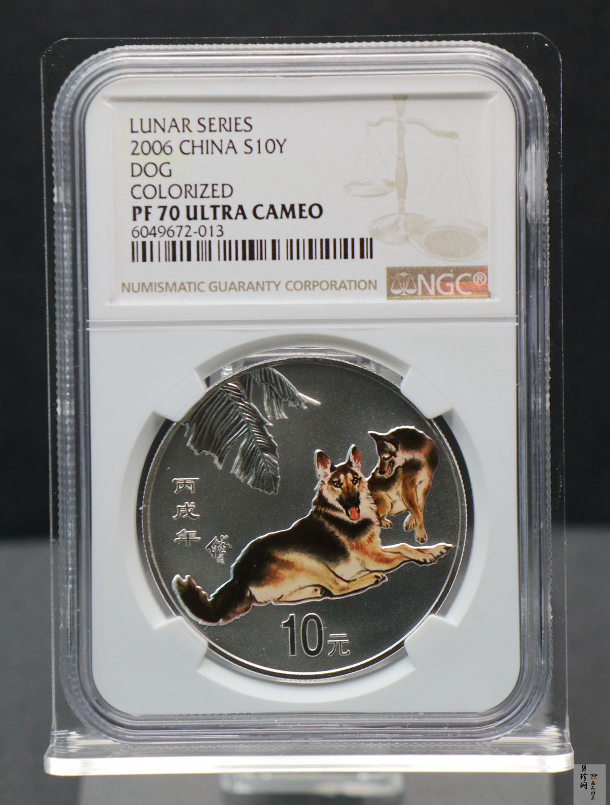 单币:2006年丙戌狗年生肖1盎司精制彩银币