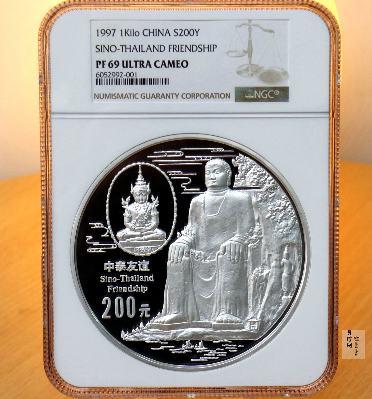 纪念币正面图案均为中国故宫和泰国王宫,并刊国名、年号。背面图案均为坐落在四川省的世界上最大的佛像乐山大佛和泰国三大国宝之一。中泰友谊纪念币中的泰国佛像身着泰国传统服饰,结跏跌坐,佛像脸部丰满,眉如新月,脸部安详、温和笑容、呈现安详宁静、慈爱友好的神态。旁边乐山大佛与山齐,双手扶膝,大佛体态匀称,神势肃穆,头上云气飘渺,山崖高徒入云,水波粼粼,一种庄严肃穆的佛家意境,让人心生敬畏和呵护之情