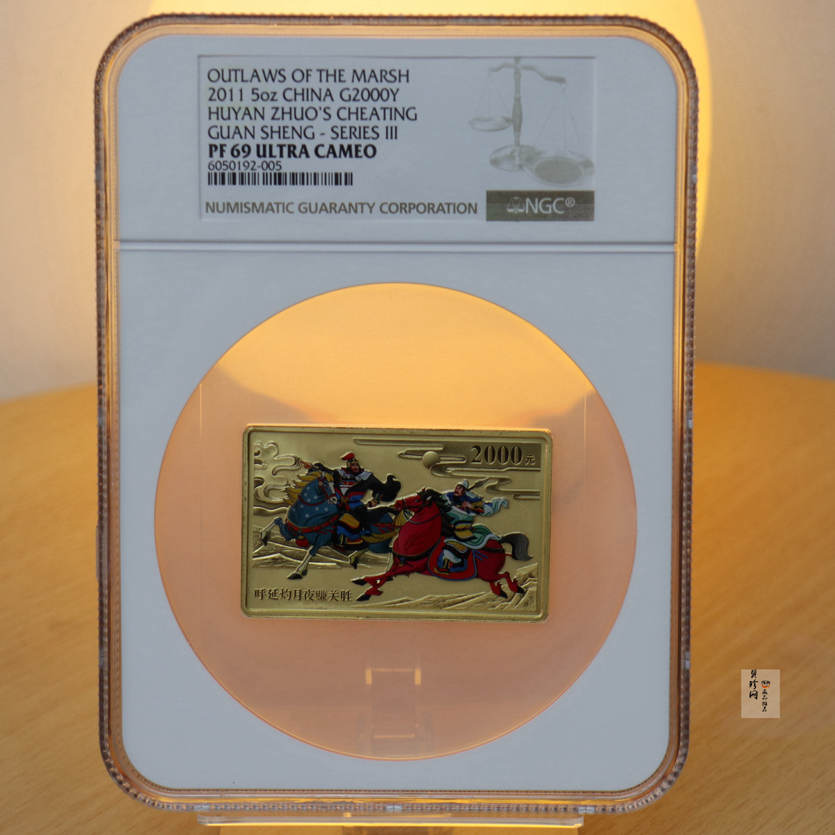 单币:2011年中国古典文学名著《水浒传》第(3)组-呼延灼月夜赚关胜5盎司长方形精制彩金币