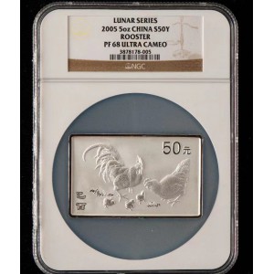 单币:2005年乙酉鸡年生肖5盎司长方形精制银币