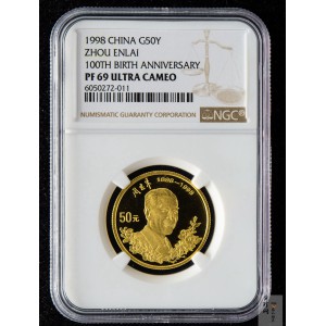 • 【980401】1998年刘少奇诞辰100周年金银纪念币-刘少奇头像1/2盎司精制金币