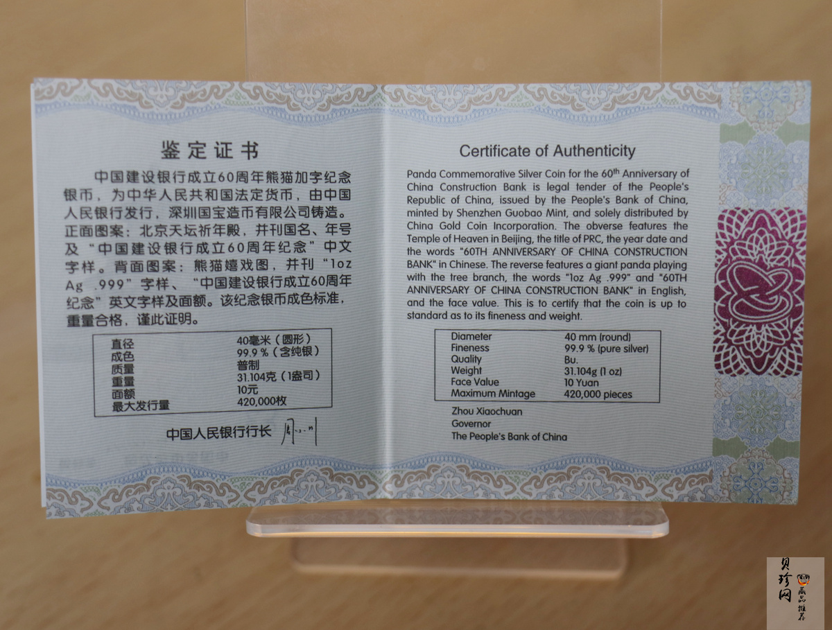 • 【140903】2014年中国建设银行成立60周年熊猫加字1盎司普制银币